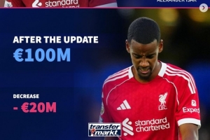 体育资讯4月11日讯 《转会市场》更新了最新一期球员,也列出了多位在本期更新身价下滑的知名球星。