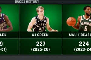 至此他本赛季命中227记三分,超越马利克·比斯利升至队史第二,仅次于雷·阿伦的229记。