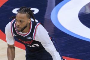 此役,快船主控加兰投射不准,他出战40分33秒,16投5中(三分8中2)、罚球4中4,得到16分5篮板7助攻3抢断,有3次失误,正负值-2。